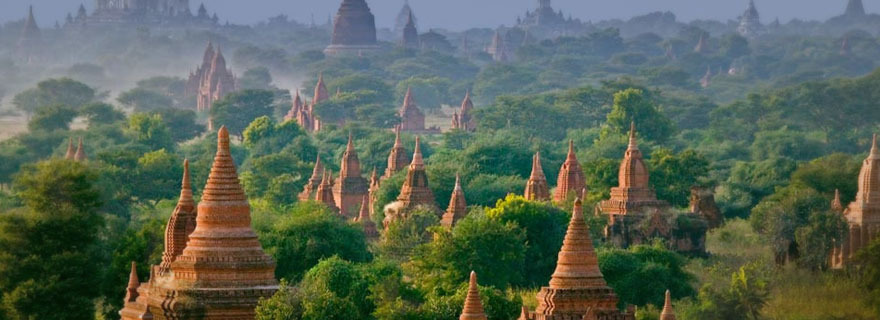 La zona de Bagan, podría considerarse el complejo religioso abandonado más grande e imponente del mundo. Las vistas panorámicas, en medio de una llanura polvorienta donde emergen como hongos miles de templos budistas, parece muchas veces un espejismo: La antigua Bagan (también llamada Pagan) es el nombre de la abandonada capital de los reinos que integraron la actual Birmania. En medio de una gran meseta árida, emergen entre la vegetación miles de cúpulas de templos y estupas en una de las ciudades religiosas más extraordinaria del planeta.